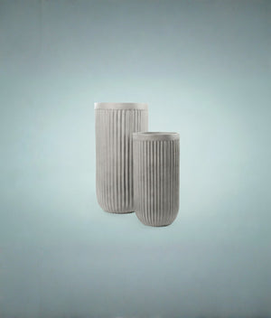 The Terracotta Linear Planter collection presents a contemporary series of vases that seamlessly blend traditional craftsmanship with modern design. This is achieved through the unique shape, aesthetic appeal, and the use of both ancient and contemporary materials. The distinctive scratched detailing along the edge enhances the elegance of the vase, introducing a decorative feature that complements its traditionally smooth silhouette, thereby refining its overall appearance and making it a striking addition to any setting. The natural color contrast between the edge and the lower section of the vase serves as a defining characteristic of this collection.