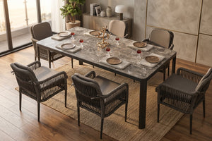 Host unforgettable alfresco dinners under the Dubai sky with a dining set that blends contemporary anthracite styling with resort-grade durability — built for the way outdoor living works in the UAE.